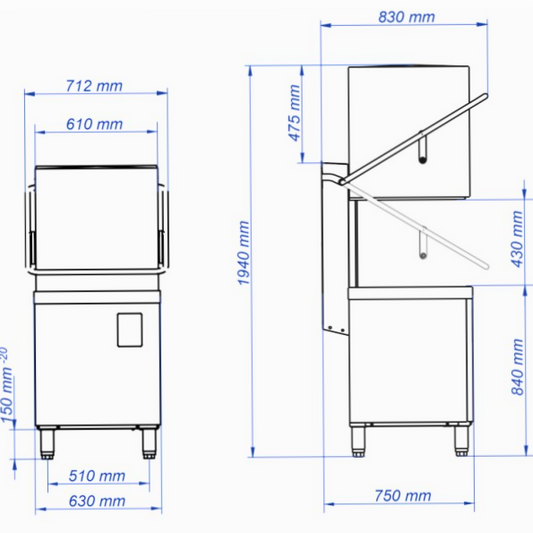 - Capot : il se soulève pour faciliter le chargement et le déchargement de la vaisselle. Une fois abaissé, il assure une étanchéité parfaite pour le cycle de lavage.