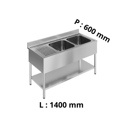 Plonge double bac égouttoir à droite - avec dosseret - P600Prix habituel Du €609,22Prix habituelPrix unitaire / par