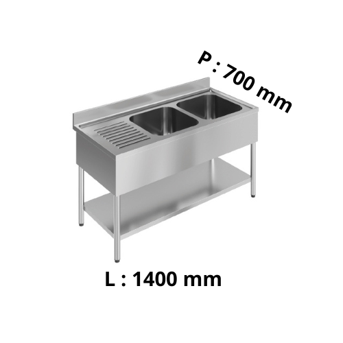 Plonge double bac égouttoir à gauche - avec dosseret - P700Prix habituel Du €630,79Prix habituelPrix unitaire / par