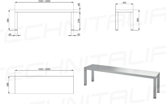 - Dimensions des pieds : 40 x 40 mm, offrant une stabilité robuste.