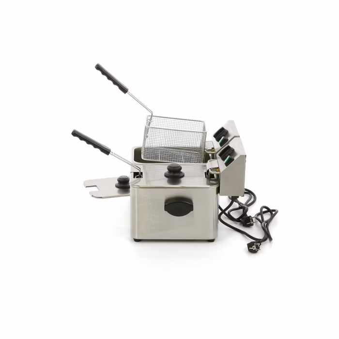 Si une friteuse de bonne qualité est un atout pour tout établissement de restauration, la sécurité a également été prise en compte, Cette friteuse est équipée de deux couvercles amovibles pour éviter les éclaboussures d'huile, Toutes les poignées sont résistantes à la chaleur et l'appareil est équipé d'une protection contre les surcharges, Pour éviter tout déplacement pendant l'utilisation, la friteuse reste stable grâce à ses pieds en caoutchouc, L'huile reste fraîche plus longtemps grâce à la zone froide intégrée, L'élément chauffant est situé juste au-dessus du fond de la friteuse, de sorte que l'huile entre l'élément et le fond reste un peu plus froide, L'avantage est que les miettes brûlent moins vite et que l'huile dure plus longtemps,