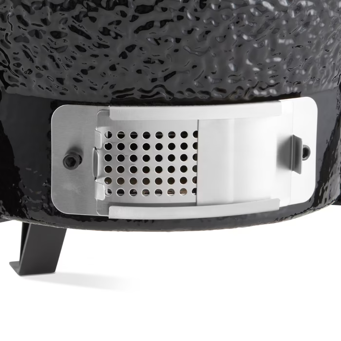 Doté d’une entrée d’air réglable à la base et d’une sortie d’air ajustable sur le couvercle, ce barbecue assure une circulation d’air parfaite, essentielle pour réguler la température de cuisson. Les plaques de gril réglables vous offrent également la flexibilité de positionner vos plats à la hauteur idéale par rapport au foyer. La paroi et le foyer en céramique résistent aux températures extrêmes, garantissant une performance durable, même avec des variations de chaleur importantes.