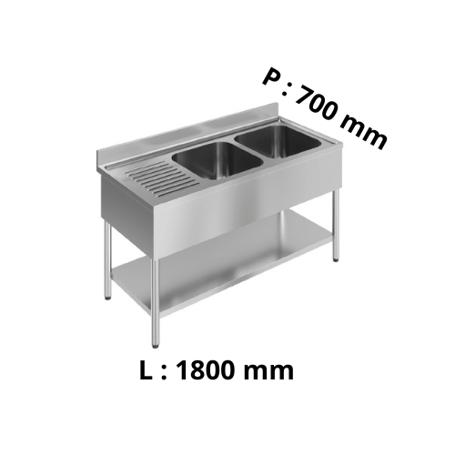 Plonge double bac égouttoir à gauche - avec dosseret - P700