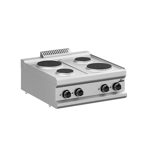 Maximisez l'efficacité de votre cuisine professionnelle avec notre réchaud électrique à 4 plaques de la gamme 700, conçu pour offrir puissance et polyvalence dans la préparation de vos plats.